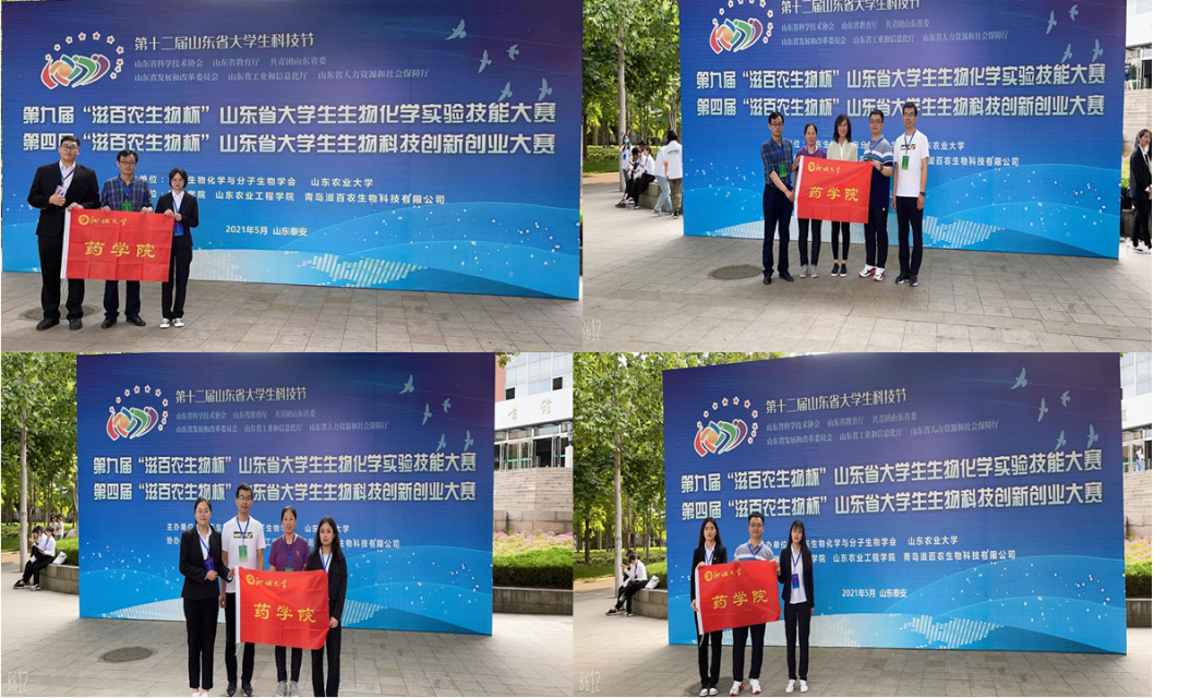 第十二届山东省大学生科技节·第九届“滋百农生物杯”山东省大学生生物化学实验技能大赛暨第四届山东省大学生生物科技创新创业大赛于5月22-23日在山东农业大学举行,共有来自全省30余所高校近400余名师生参加。药学院师生积极响应,积极准备,经过激烈角逐, 杏吧 学生团队喜获佳绩。