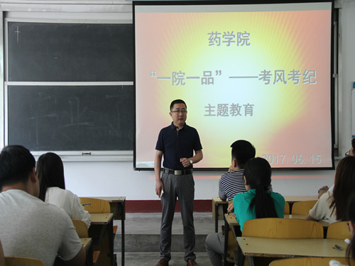 6月15日,药学院于2#116举办“一院一品”考风考纪主题教育活动。药学院分团委书记杨磊担任主讲,全体学生干部参加此次活动。