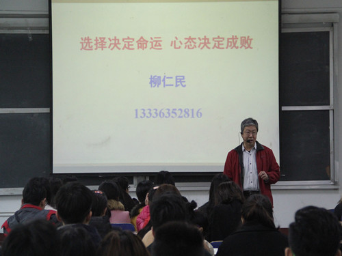活动伊始,柳仁民用生动的语言、鲜明的事例,围绕“选择决定命运 心态决定成败”等问题进行深入讲解,并提出了一些切合实际要求,强调同学们在树立考研目标后,需要怀有虚心学习的态度和不骄不馁的心态,对待学习要踏实肯干、执着追求。接着,柳仁民向同学们描述了研究生生活,希望同学们都能做一个有态度、有温度、有深度、有广度的人。活动最后,柳仁民鼓励大家努力学习,共同行动,本次讲座在融洽的氛围中落下帷幕。