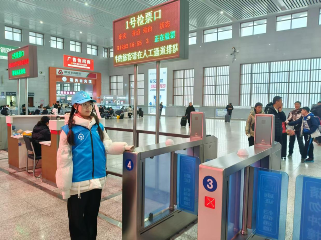 我是大一学生朱雨彤,这个寒假我在聊城市火车站实习,职务为出站口检票员。
