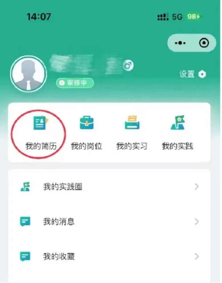 学院审核需要在小程序“我的”界面上方“去认证”填写相关信息,然后提交才能被学院正常审核。