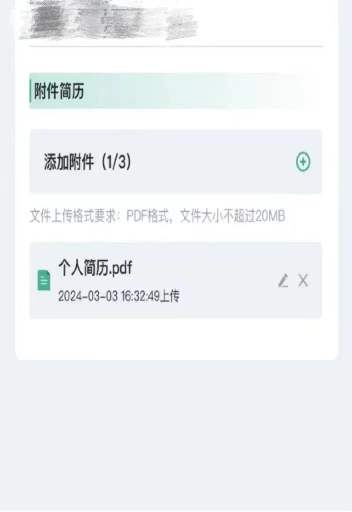 5、点击“附件简历”,添加个人制作简历的PDF形式进行上传