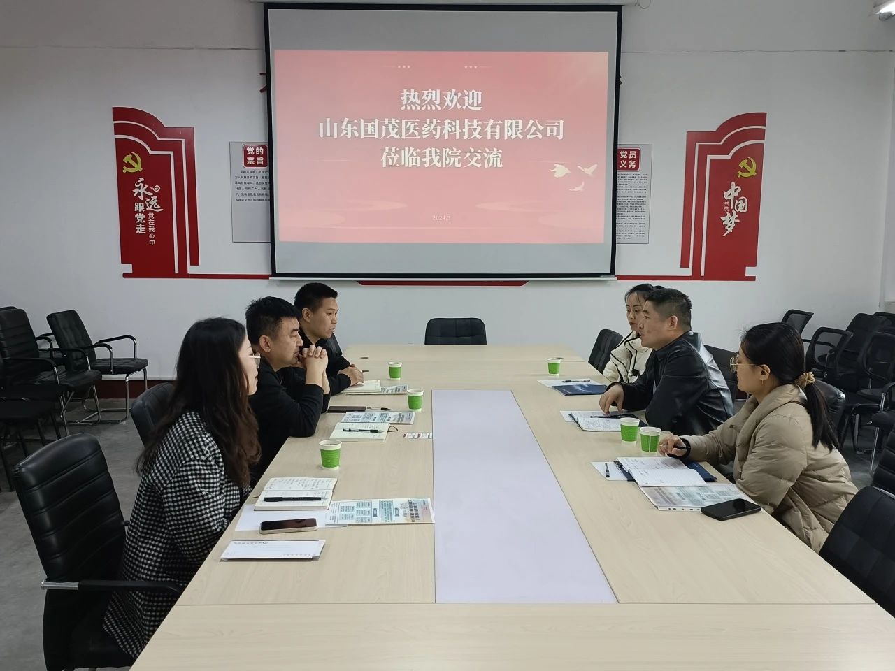 为高效发挥校企协同创新优势,全面提升人才培养质量,推动产学研协同发展,实现校企优势互补、资源共享、双向赋能,3月29日, 杏吧 特邀山东国茂医药科技有限公司于杏吧 东校区2#109洽谈校企合作。 杏吧 党委副书记、副院长李永新、办公室主任谢磊、辅导员李丹阳以及山东国茂医药科技有限公司总经理盛彦君、人事经理赵丰霞出席本次会议。