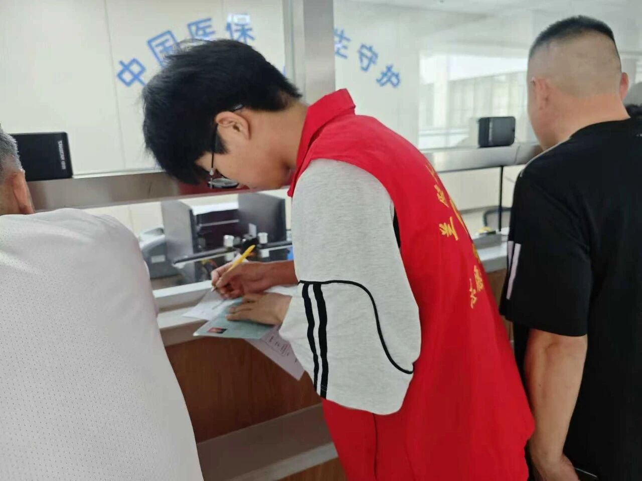遇到不识字的老人需要协助填写表格时,我会主动上前帮忙:先亲切询问老人的相关信息,再仔细了解情况,最后核对确认,确保所填信息准确无误。